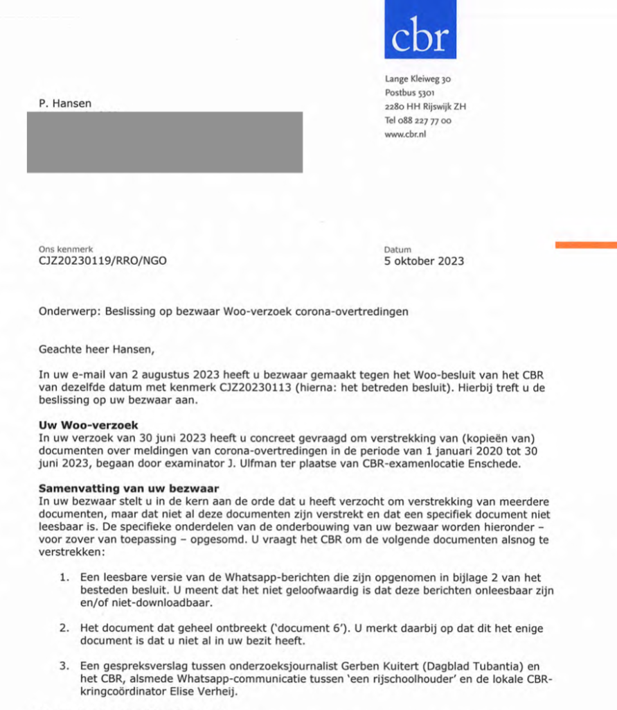 Op Onrecht.nl is te lezen hoe een levensgevaarlijke overtreding van de coronamaatregelen bij het CBR zelf in de doofpot verdween. In een nieuw artikel gaat de onderzoeksredactie van het internationale journalistencollectief Voiceless in op Woo-documenten die het CBR in 2023 op grond van de wet openbaar moest maken. De stukken laten zien hoe meldingen over ernstige overtredingen door examinatoren intern zijn behandeld, en hoe meerdere signalen zonder zichtbare opvolging lijken te zijn verdwenen. Hoe de doofpot cultuur overheerste.