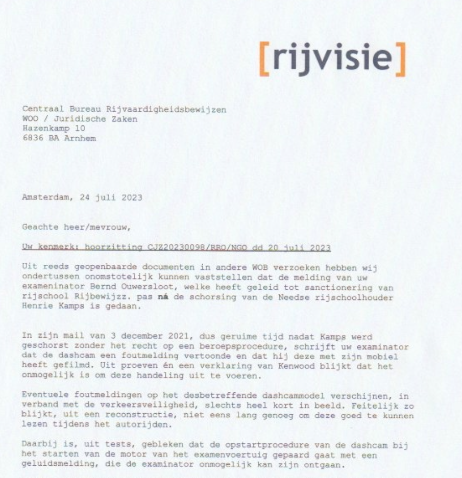 Op 24 juli 2023 stuurde de redactie van het toenmalige blog Rijvisie een brief naar de afdeling Juridische Zaken van het CBR. Die brief is daarna door het CBR nooit openbaar gemaakt, terwijl dat op grond van de Wet open overheid wél had gemoeten. Dat is de conclusie van een researchjournalist in een artikel dat vorig jaar al werd gepubliceerd. Het onderzoek richt zich op het dossier “Chaos bij het CBR”.