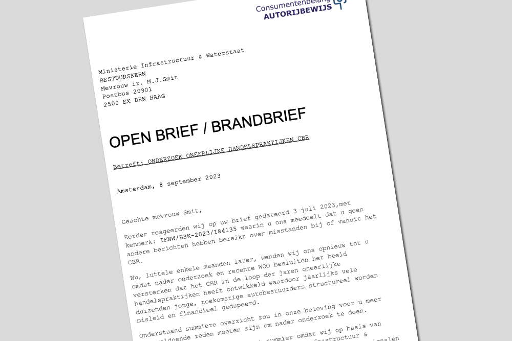 Op 8 september 2023 trok de Vereniging Consumentenbelang Autorijbewijs (VCBA) in een brandbrief aan topambtenaren van het ministerie aan de bel. Daarin waarschuwde de vereniging niet alleen voor de aanhoudende capaciteitsproblemen, maar ook voor de mogelijke onwettigheid van de tussentijdse toets.